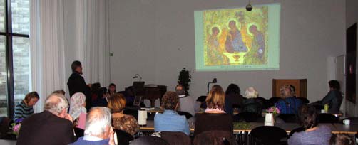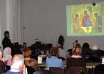 Для остальных центральными событиями была выставка православных икон и доклад о.Сергия Бондарева о канонах православного изобразительного искусства