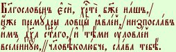 Благословен Ты, Христе Боже наш, соделавший премудрыми рыбарей, ниспослав на них Духа Святого, и чрез них уловивший вселенную. Человеколюбец,